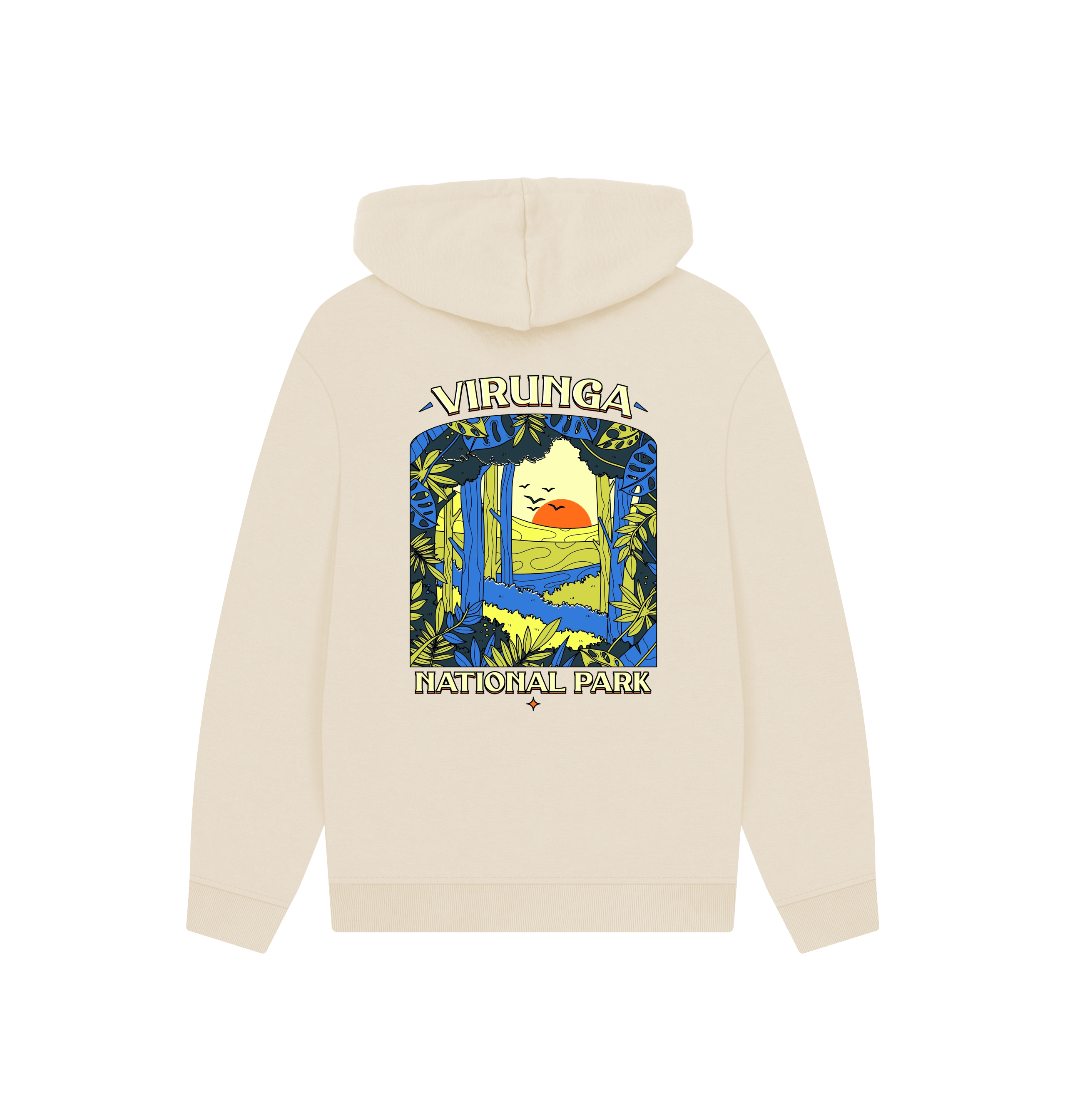 The National Park Unisex hoody combines comfort and style with a relaxed, roomy fit. Made from sustainable materials, it’s perfect for everyday wear — a versatile essential inspired by the spirit of Virunga National Park.