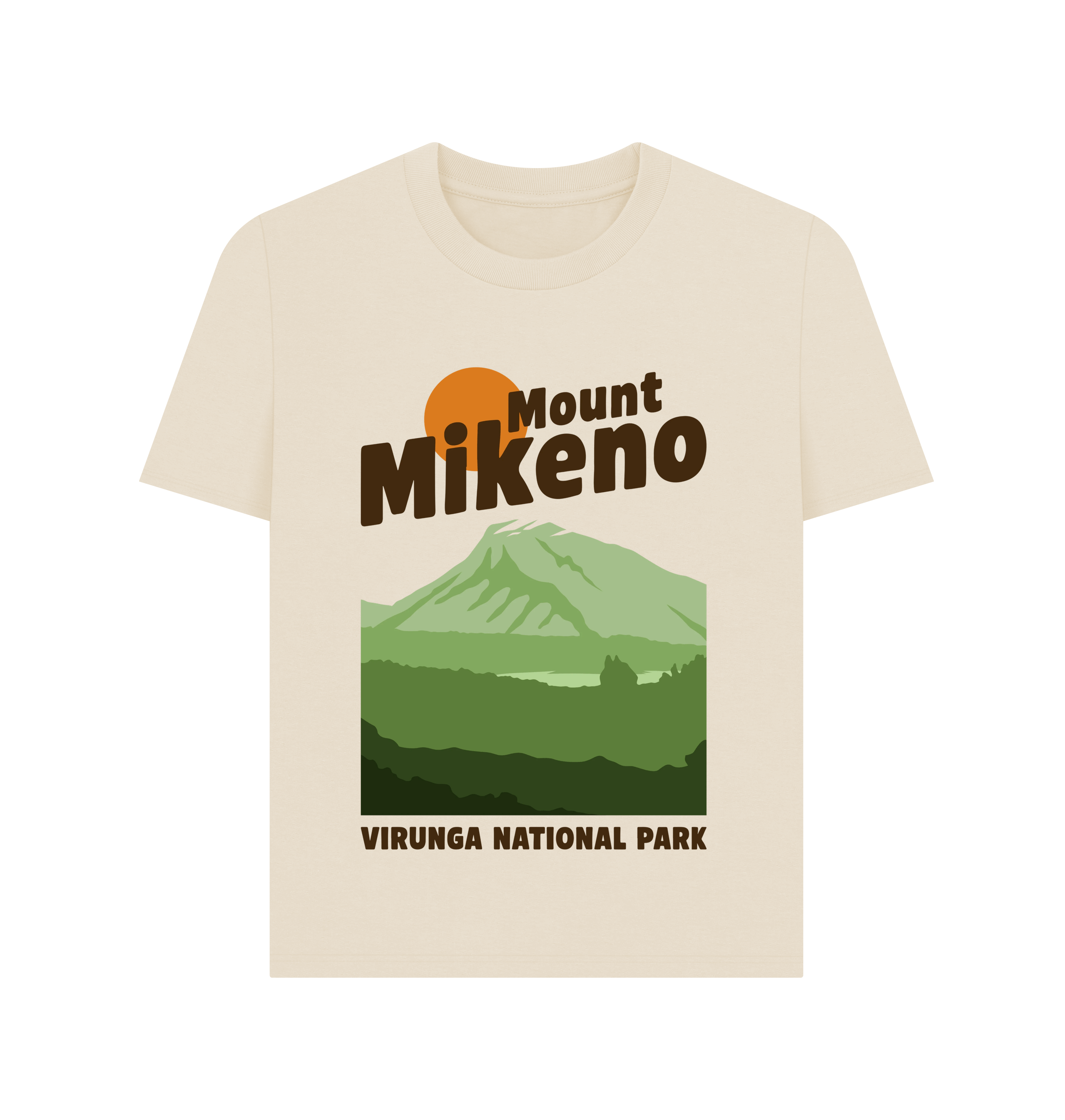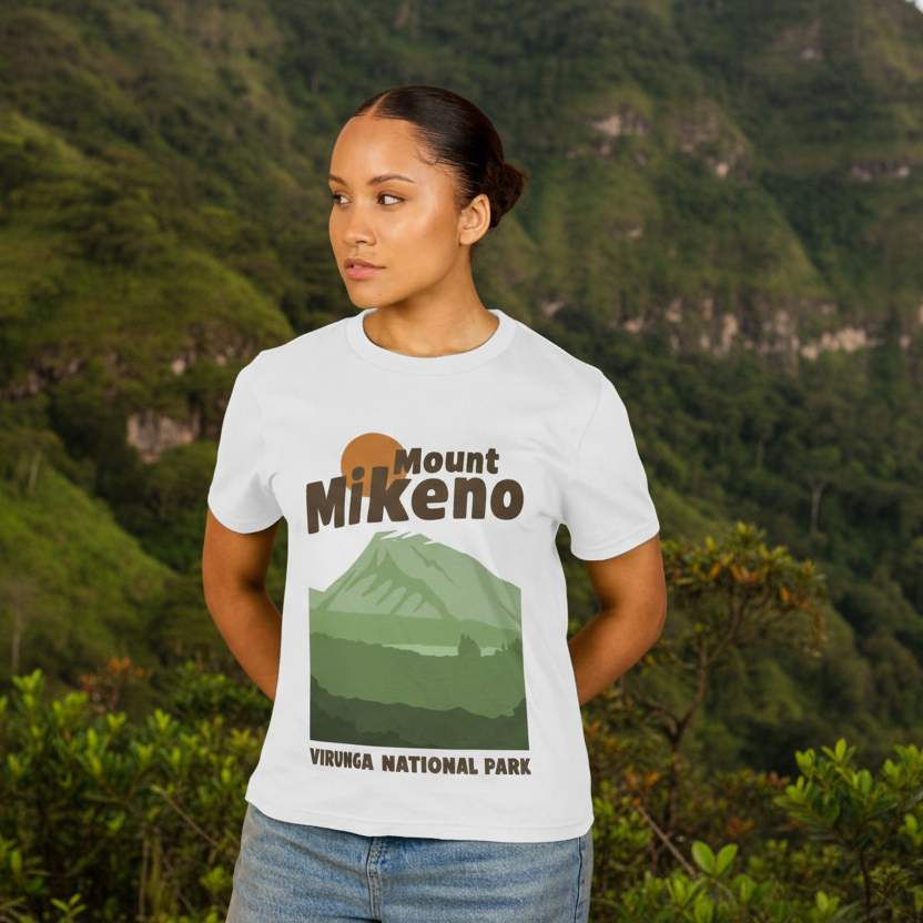 The Mount Mikeno Women’s T-shirt combines comfort and style with a relaxed fit, perfect for everyday wear. Made from sustainable materials, it’s inspired by the forested slopes of Mount Mikeno, home to endangered mountain gorillas. Every purchase helps support the protection of Virunga National Park and its wildlife.